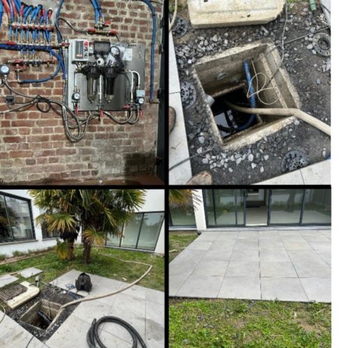 Cette semaine, nous sommes intervenus à Carvin chez un particulier pour la pose d’un gestionnaire 4 en 1 destiné à optimiser l’utilisation de l’eau de pluie. L’intervention comprenait le passage de gaines entre la cuve et le gestionnaire afin d’assurer un fonctionnement complet et efficace de l’installation. Notre équipe en a également profité pour procéder au nettoyage de la cuve ainsi qu’au remplacement des filtres. Une pompe immergée Gardena a été mise en place afin de garantir une utilisation optimale de l’eau stockée. Le chantier présentait une contrainte particulière, la cuve étant située sous une terrasse. Nos équipes ont donc dû s’adapter aux conditions d’accès afin de mener à bien l’intervention.